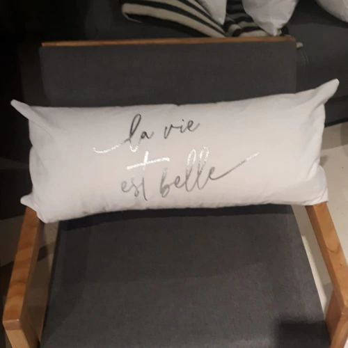 Almohadon Decorativo en Tusor con Frase La Vie Est Belle. Dale un toque moderno a tus espacios con estos bellos almohadones de calidad premium, ya sea para decorar tu living o habitación quedan divinos en cualquier parte del hogar!