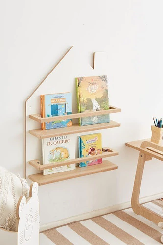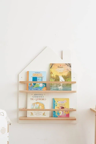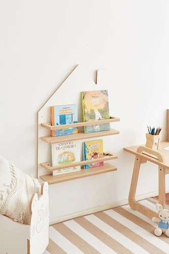 Para colgar a la pared a la altura del niño para que pueda ordenar sus cuentos u otros accesorios / juguetes.