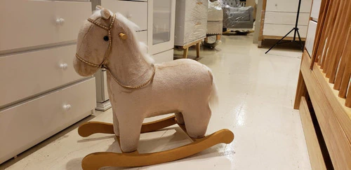 - Caballo Confeccionado en Peluche Beige y Blanco con Frenito en la Trompa.