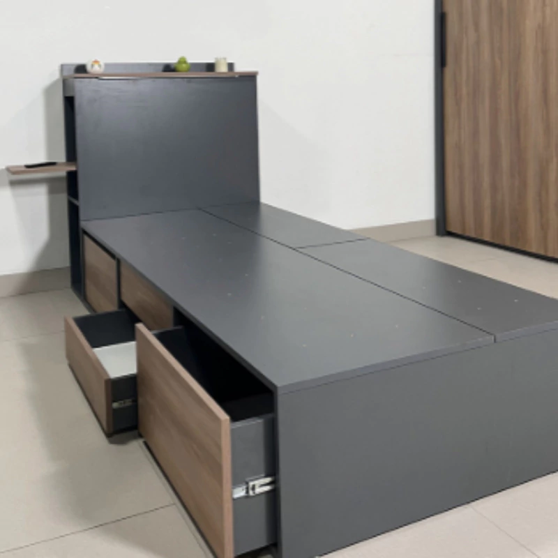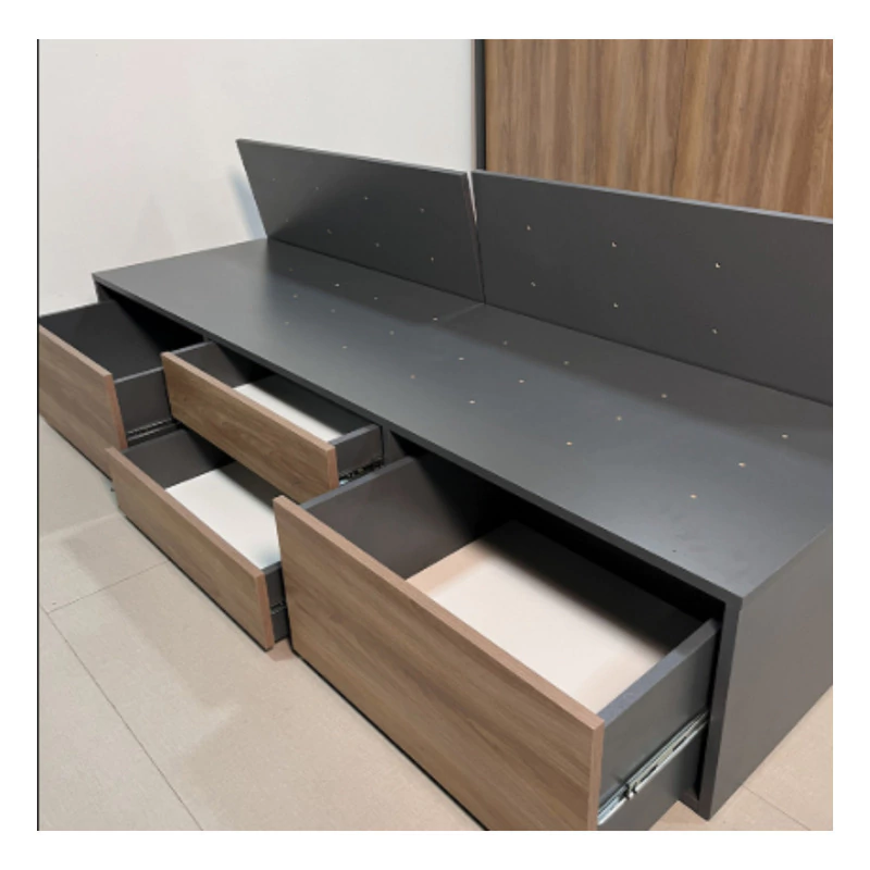 Cama multifunción con 4 cajones laterales y dos módulos de guardado