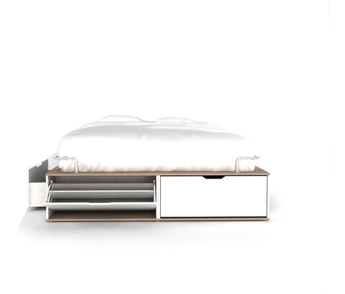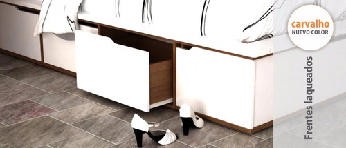 Una línea concebida con un diseño actual, minimalista, con colores clásicos y un aspecto moderno a la vez. Posee una mayor cantidad de lugares de guardado, solo queda visible aquello que utilizamos para decorar la habitación. Capacidad para colchón de 140 x 190 hasta 160 x 200 cm. Posee cajones inferiores (3 por cada lateral) con grandes dimensiones, 2 zapateros abatible en el frente de la cama apto para 10 pares de zapatos cada uno. Apto para armar en las habitaciones mas pequeñas gracias a su sistema modular-independiente