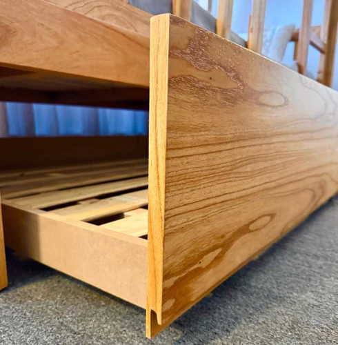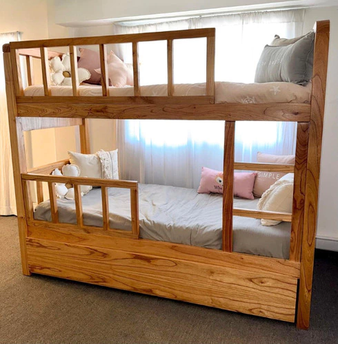 La cama cucheta ARCHIE, cuenta con escalera y barandas superior e inferior protección, con cama carro para colchon 80x190x10 al piso.