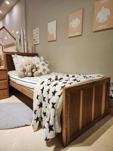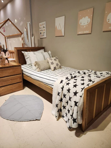 Hermosa cama de 1 plaza - Estructura en madera maciza en Petiribi, que la hace resistente y duradera al paso del tiempo.