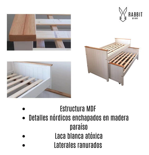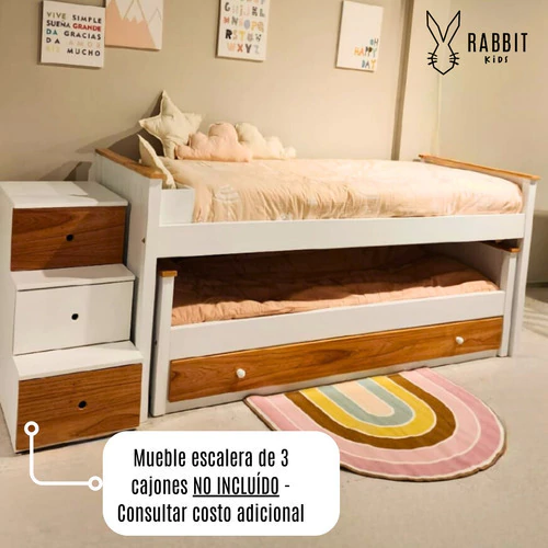 La Cama Nido London Nórdica es un modelo clásico y juvenil, ya sea para el cuarto de hermanos o para las visitas. Posee una cama superior donde se ubica en un extremo el guarda almohada/guarda juguetes y una Cama inferior con rueditas para un fácil deslizamiento, que, cuando no la uses, estarás optimizando el espacio de tu dormitorio. También podes adicionar otra cama auxiliar o cajones.
