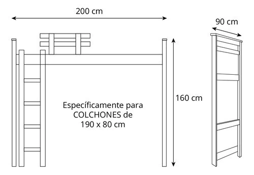 Medidas externas finales: 200 x 90 x 160 cm (largo x ancho x alto)