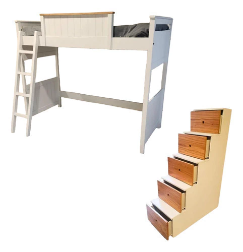 Cama Puente London 1 Plaza Dormitorio Juvenil + Mueble escalera de 5 cajones.