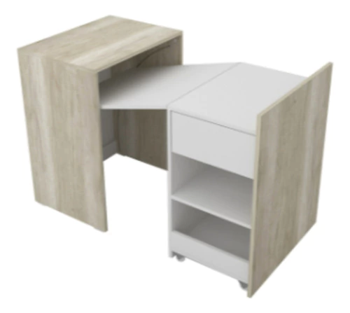 Incluye mesa escritorio plegable y multifuncion. Posee espacios de guardados y un cajón. Se destaca por el cajón que es reversible amplia mesa de apoyo para su comodidad.