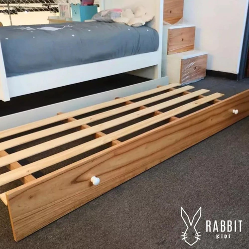Carro cama al piso de una plaza para colchón de 80/70x180/190cm, con frente en paraíso o guatambú y 2 tiradores blancos