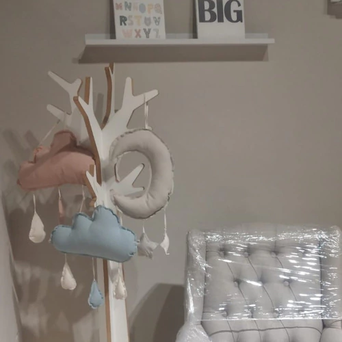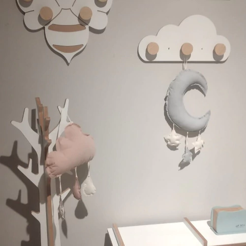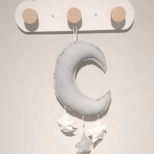 Colgante móvil en forma de luna con tres estrellas colgantes o en forma de nube con tres nubecitas colgando. Ideal para decorar tus ambientes o el cuarto infantil/juvenil y darle un toque moderno, divertido y chic!