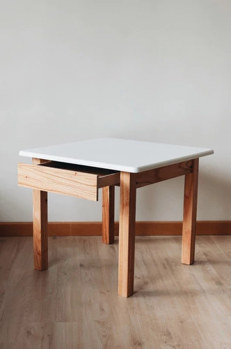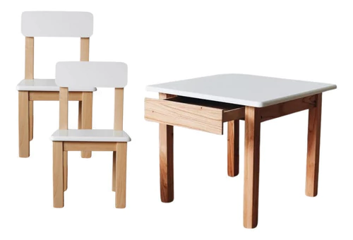 Juego Infantil de 1 Mesa con cajón + 2 Sillas en Paraíso y c/ Laqueado Blanco