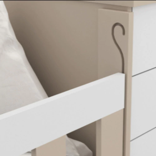 Configurable en tres alturas de parrilla Cajón con correderas telescópicas para su mejor deslizamiento. Con Tiradores laqueados en forma de Medialuna.