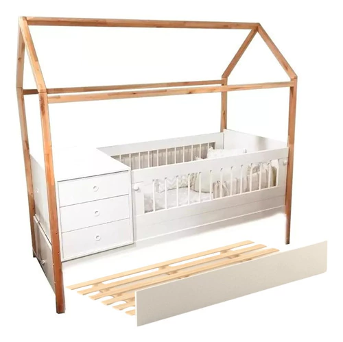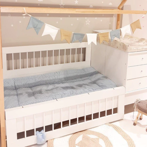 CUNA FUNCIONAL CASITA MONTESSORI CON CARRO CAMA INCLUIDO