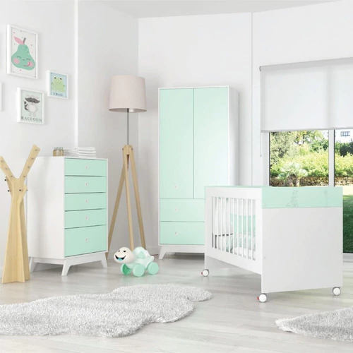 Acompaña el crecimiento del niño convirtiéndose de moisés a cuna (modificando la altura de la parrilla) y una vez que se deja de utilizar como cuna, puede armarse como escritorio, con la base a media altura a modo de mesa infantil, o en la posición superior adoptando una altura de escritorio estándar.