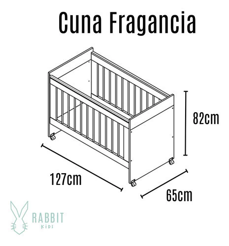 Cuna para colchón de 60x120cm de medida estándar, apta para niños hasta 2 años.