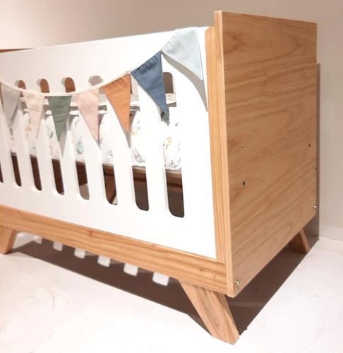 Este modelo cuna estilo nórdica acompaña el crecimiento del niño por contar con posición de colecho, que permite el uso desde los primeros días del bebe, para luego pasar a la posición profunda y definitiva que da seguridad por su profundidad de baranda. La misma es móvil, puede retirarse lo que permite en su ultima etapa de transformación el uso como mini camita para que el niño pueda subir y bajar solo.