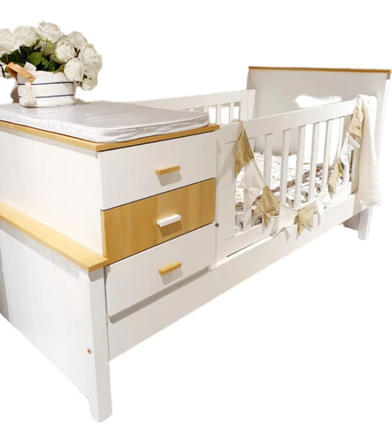 La Cuna Funcional Venecia acompaña al crecimiento del niño. Quitando la baranda de frente cuando el niño ya no la necesite, y luego retirando los módulos de cajonera, se convierte en una cama de 1 plaza para colchón de 80x190cm.