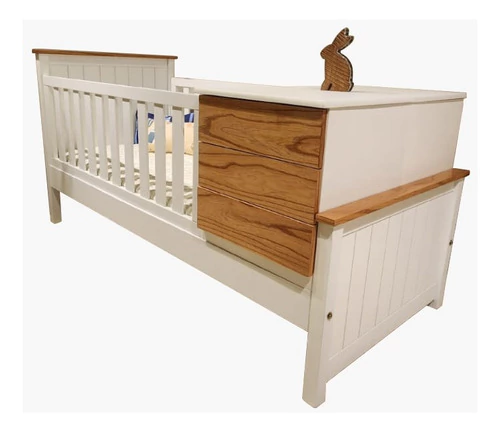 La Cuna Funcional Alf acompaña al crecimiento del niño. Quitando la baranda de frente cuando el niño ya no la necesite, y luego retirando los módulos de cajonera, se convierte en una cama de 1 plaza para colchón de 80x190cm.