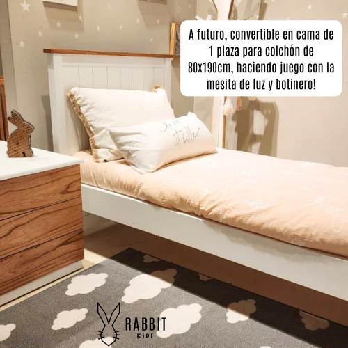 - Para colchón de 80x140cm, convertible en cama de 1 plaza para colchón de 80x190cm.