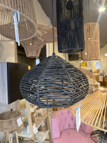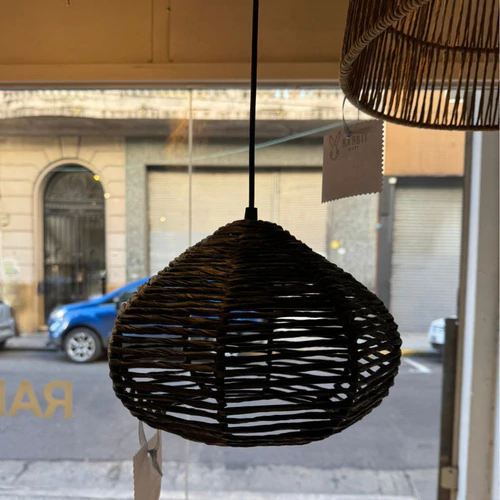 Compacta, decorativa y con mucha personalidad. La lámpara colgante “Aladín Chica” está tejida a mano en hilo kraft natural y se destaca por su forma inspirada en las lámparas orientales. Disponible en color tostado o negro, es ideal para sumar un detalle artesanal con estilo exótico a cualquier rincón.
