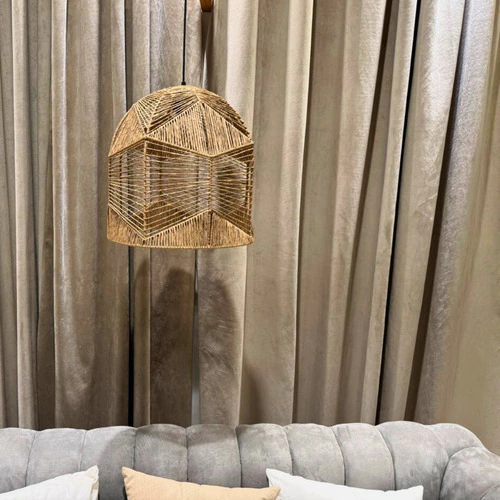 Sumale diseño, textura y un toque moderno a tus ambientes con la lámpara colgante “Rombo”, un modelo artesanal tejido completamente a mano en hilo kraft tostado.