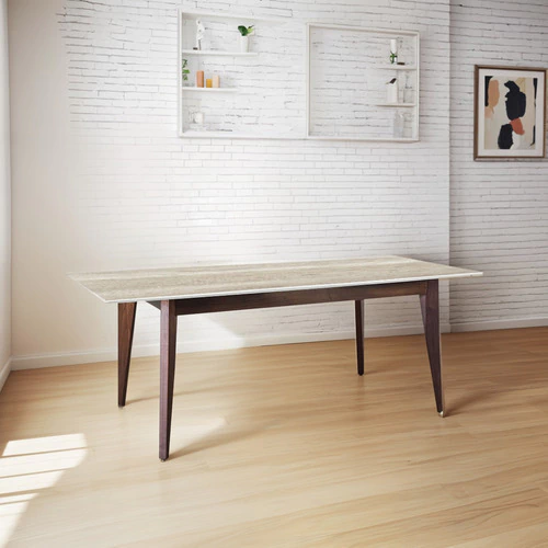 Con tapa fija entera, posee patas de madera de paraíso disponible en 2 colores de patas: Paraíso natural (color paraíso) o Lustre wengue (marrón oscuro).