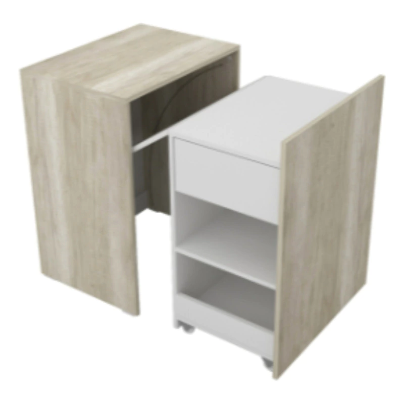 Mesa Escritorio plegable y multifuncion. Recomendada para espacios pequeños. Posee espacios de guardados y un cajón. Diseño Original y exclusivo. Para un uso mas efectivo se recomienda amurar a la pared. Amplia mesa de apoyo para su comodidad.