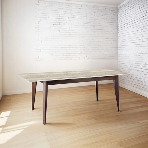 Con tapa fija entera, posee patas de madera de paraíso disponible en 2 colores de patas: Paraíso natural (color paraíso) o Lustre wengue (marrón oscuro).
