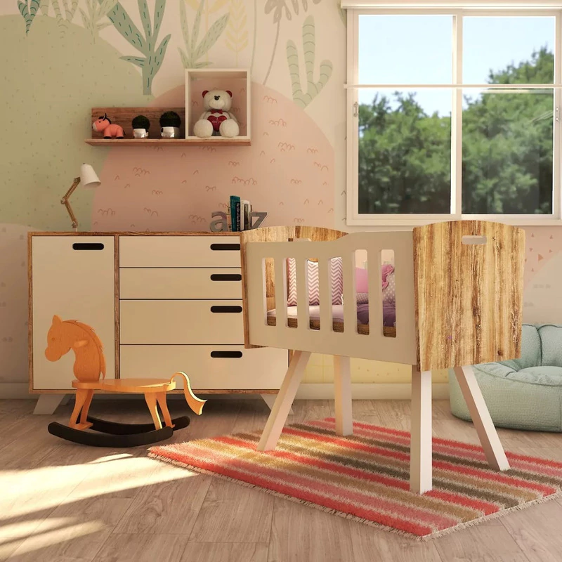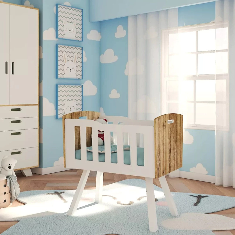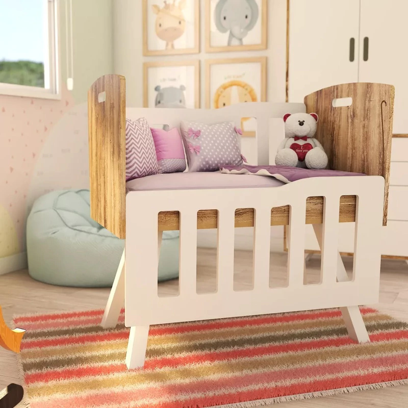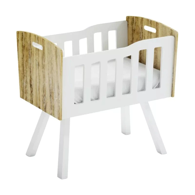 Hermosa cuna clásica con estilo nordico y barandas deslizables. Por su tamaño es perfecta para acompañarte en los primeros meses de tu bebe antes de pasarla a una cuna mas grande!