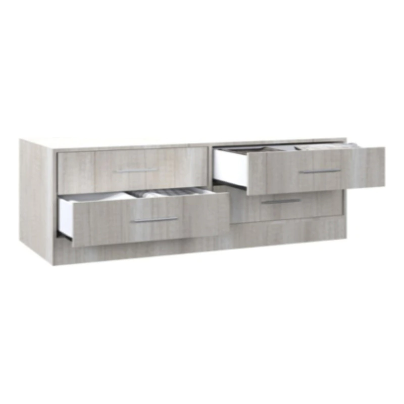 Posee 4 cajones a la vista con correderas telescópicas y de gran capacidad interior de guardado. Se destaca por su profundidad de 60 cm útiles y por ser un accesorio modular para sumar a los vestidores