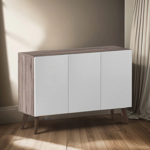 El módulo podrás personalizarlo, con colores blanco satinado en sus frentes o negro texturado, así como también podrás elegir patas metálicas negras texturadas con un diseño de líneas rectas o bien patas de madera de paraíso lustradas en tinte wengue al mejor estilo nórdico.