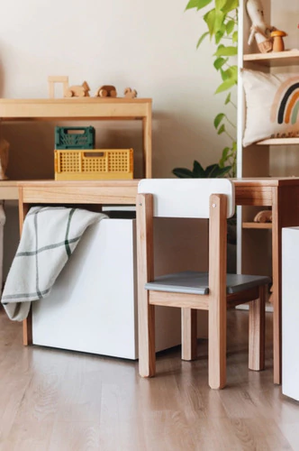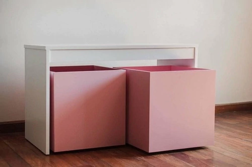 Mesa con jugueteros, ruedas ocultas - ESTRUCTURA BLANCA Y BAULES BLANCO