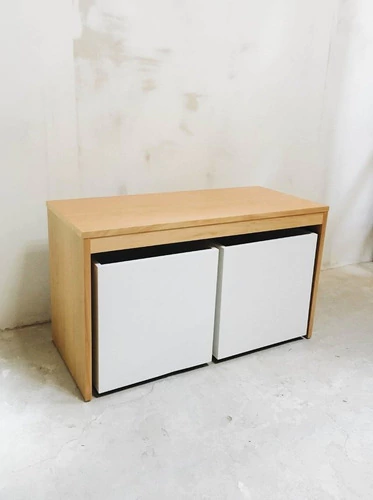 Mesa de 90x40x50cm y 2 jugueteros de 40x40x40cm con ruedas ocultas.