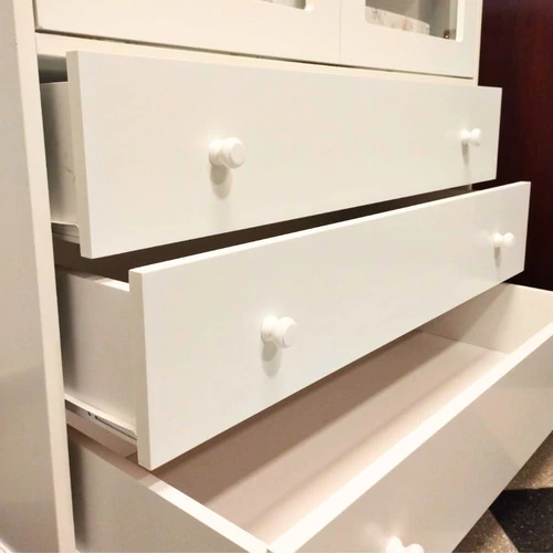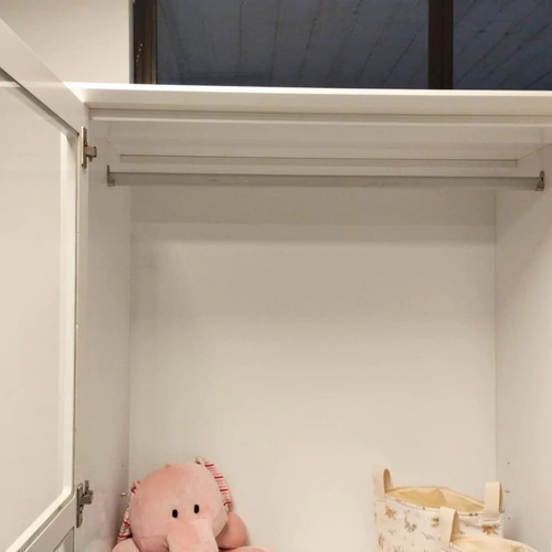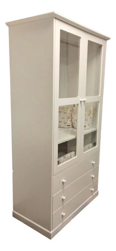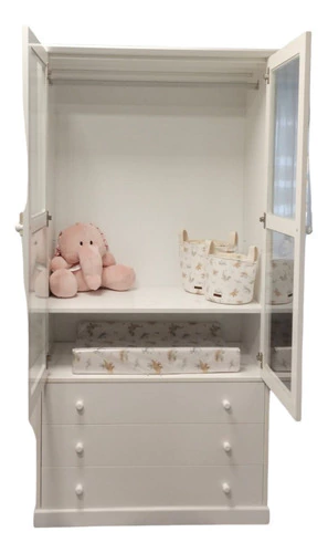 Nos permite optimizar el espacio de guardado ya que su espacio superior contiene un barral y un estante regulable en altura ademas de 3 cajones inferiores que nos permiten tener todo organizado.