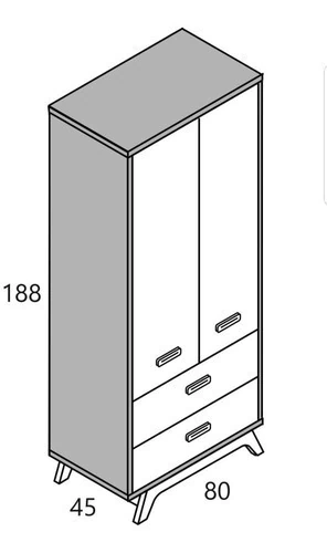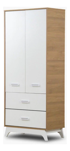 Ropero de 2 puertas y 2 cajones serie linnea, cajones con correderas metálicas. En su interior, una puerta con barral perchero y la otra con dos prácticos estantes.