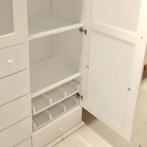 - Dos puertas con acrílico y 7 cajones con guias metalicas.