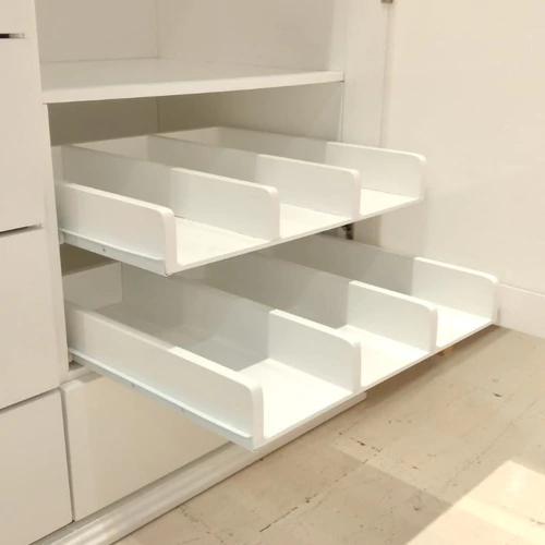 - Espacio deslizable para calzado, Estantes y barral