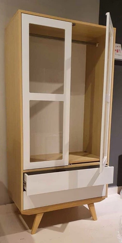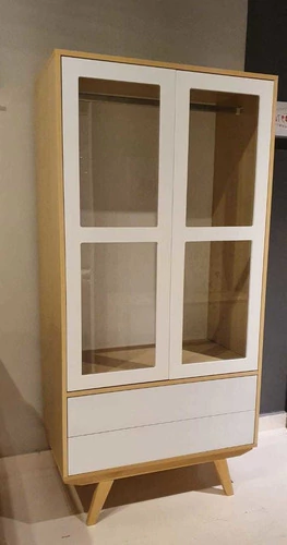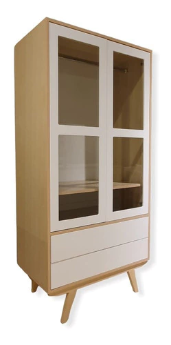 De líneas rectas con sus patas nordicas realizadas en madera maciza de guatambú. El lustrado es realizado con UV coating ®que le da una dureza, suavilidad y calidad inigualable. Sus cajones y puertas cuentan con el sistema Push que permite abrir los cajones simplemente presionándolos, al igual que la puerta de vidrio. En su interior cuenta con un barral y un estante regulable.