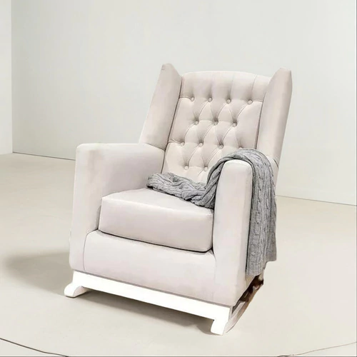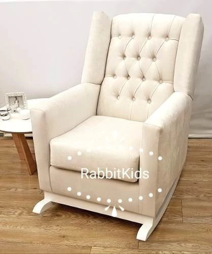 Sillón Mecedor modelo Eider, tapizado en Pana, con respaldo en Capitoné.