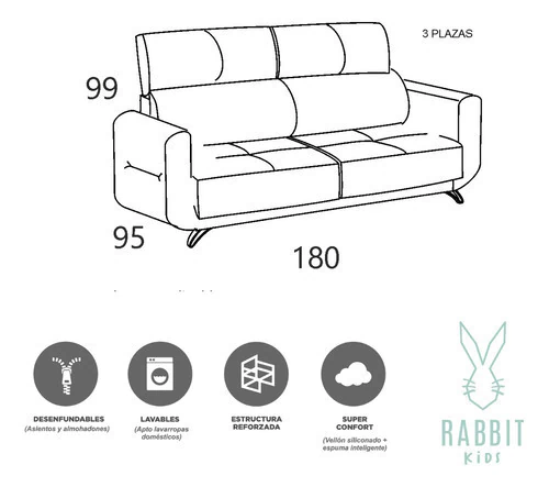 Cuenta con estructura reforzada de madera maciza y la mejor calidad en tapicería, con costuras dobles reforzadas de gran resistencia.