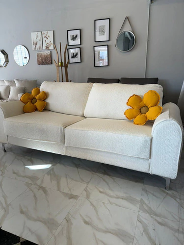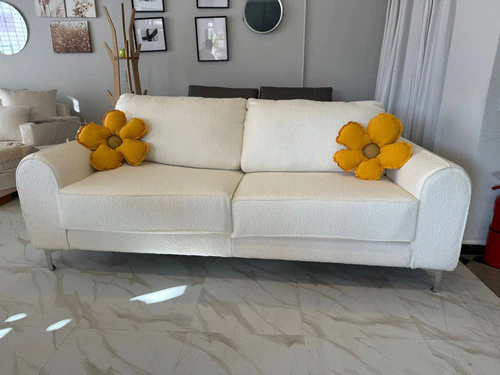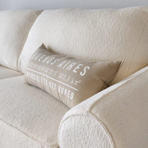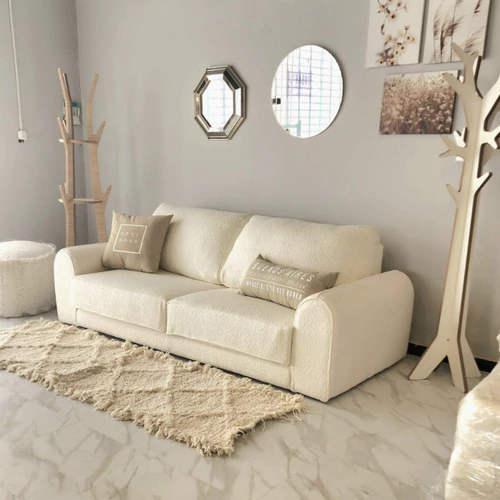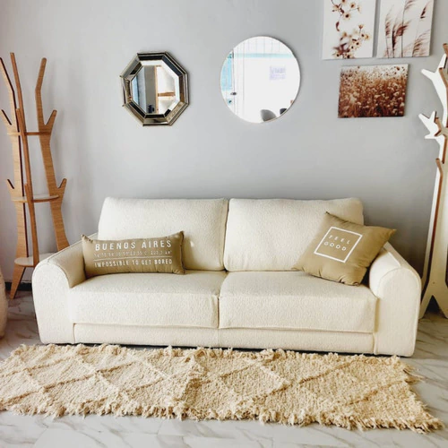 Rabbit Home les presenta el sofá Oslo, un sofa atemporal y de estilo sofisticado. Confeccionado en tela bouclé y una sólida estructura de madera saligna, se caracteriza por poseer una superficie irregular hecha a base de hilos con nudos.