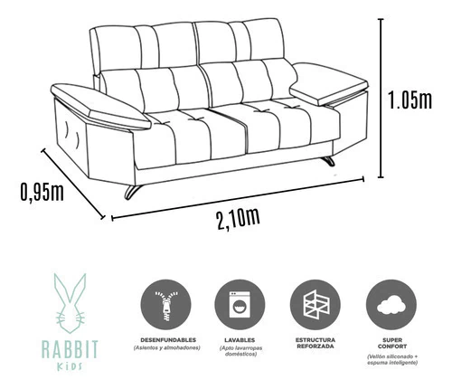 Cuenta con estructura reforzada de madera maciza y la mejor calidad en tapicería, con costuras dobles reforzadas de gran resistencia.