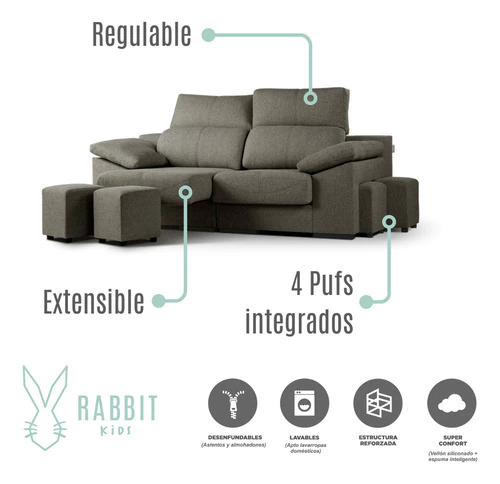 Cuenta con la particularidad de contar con asientos extensibles para descansar cómodamente las piernas y apoya cabezas reclinables de 3 puntos para encontrar la posición justa para una comodidad extrema. Las dos plazas extensibles del sofá poseen guías reforzadas que soportan el peso de 1 (una) persona para que puedas sentarte tranquilo y luego acomodar tus piernas.