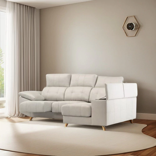 Sofá chaise longue. Asientos extensibles. Apoya cabezas reclinables.