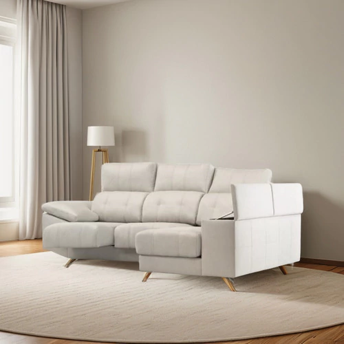 Sofá chaise longue. Asientos extensibles. Apoya cabezas reclinables.